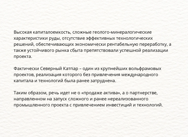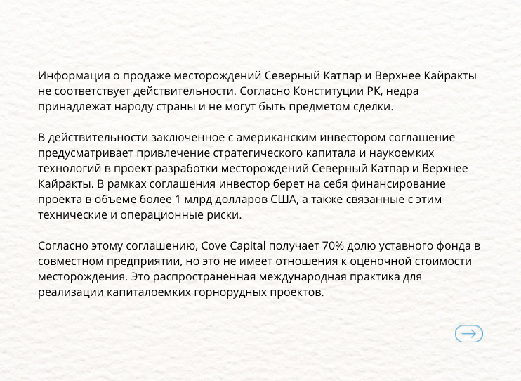 Официальный комментарий АО «НГК «Тау-Кен Самрук» касательно реализации проекта Северный Катпар